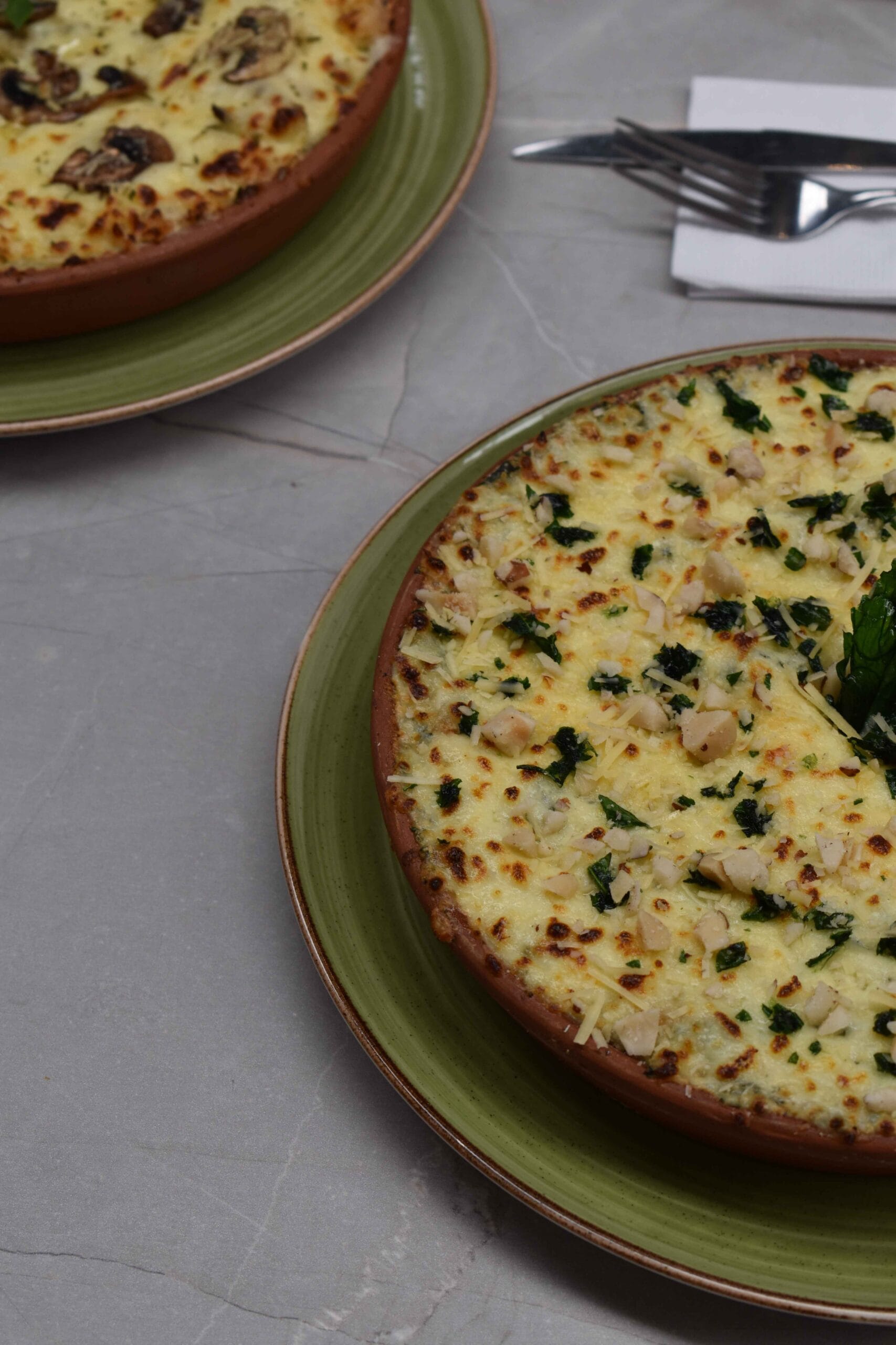 Ricotta, espinaca, nueces, mozzarella, parmesano. 🥜